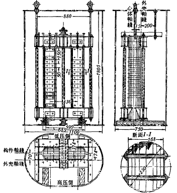 圖3-3是我國(guó)制造的35千伏550千伏安消弧線圈的內(nèi)部結(jié)構(gòu)